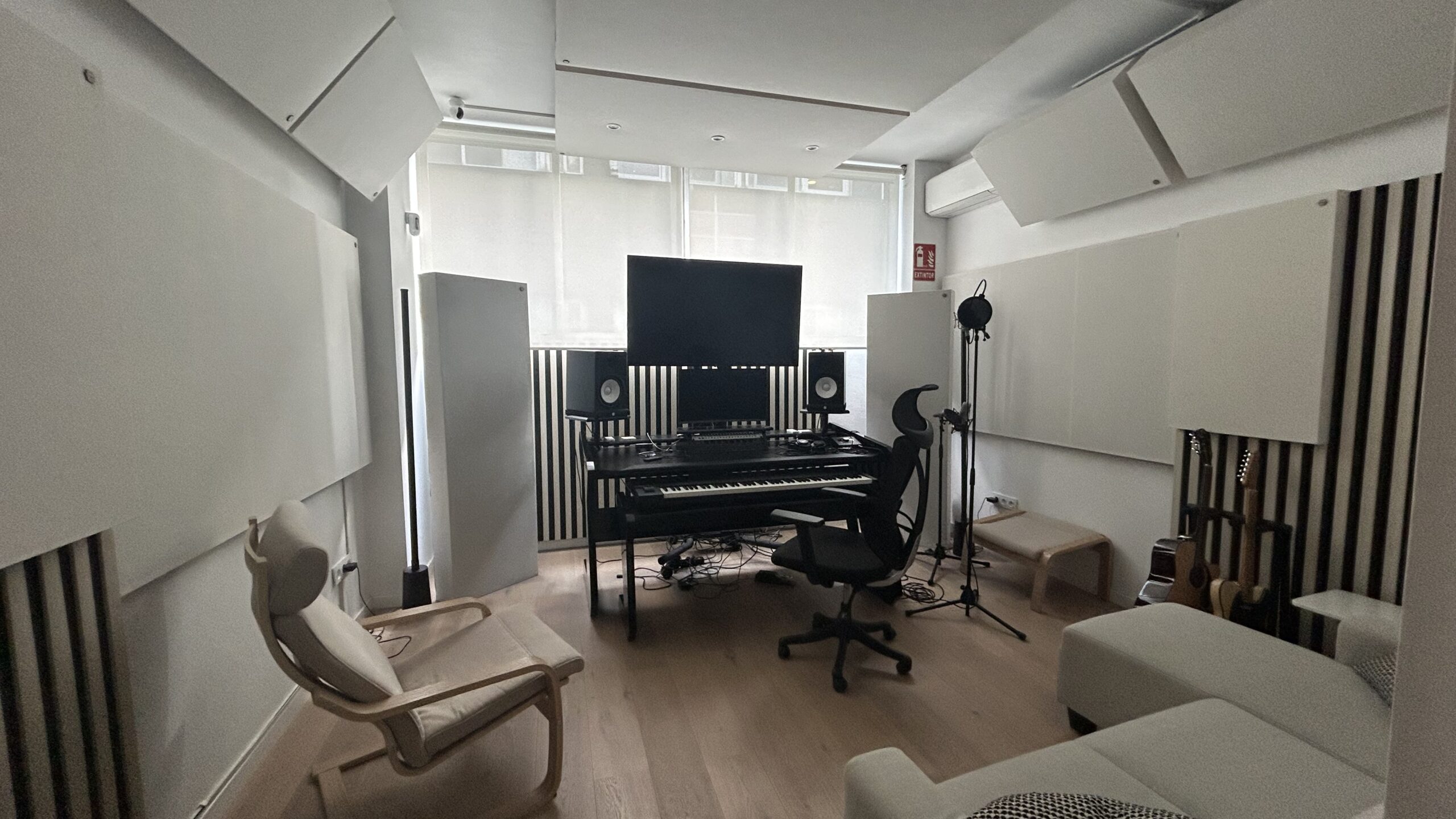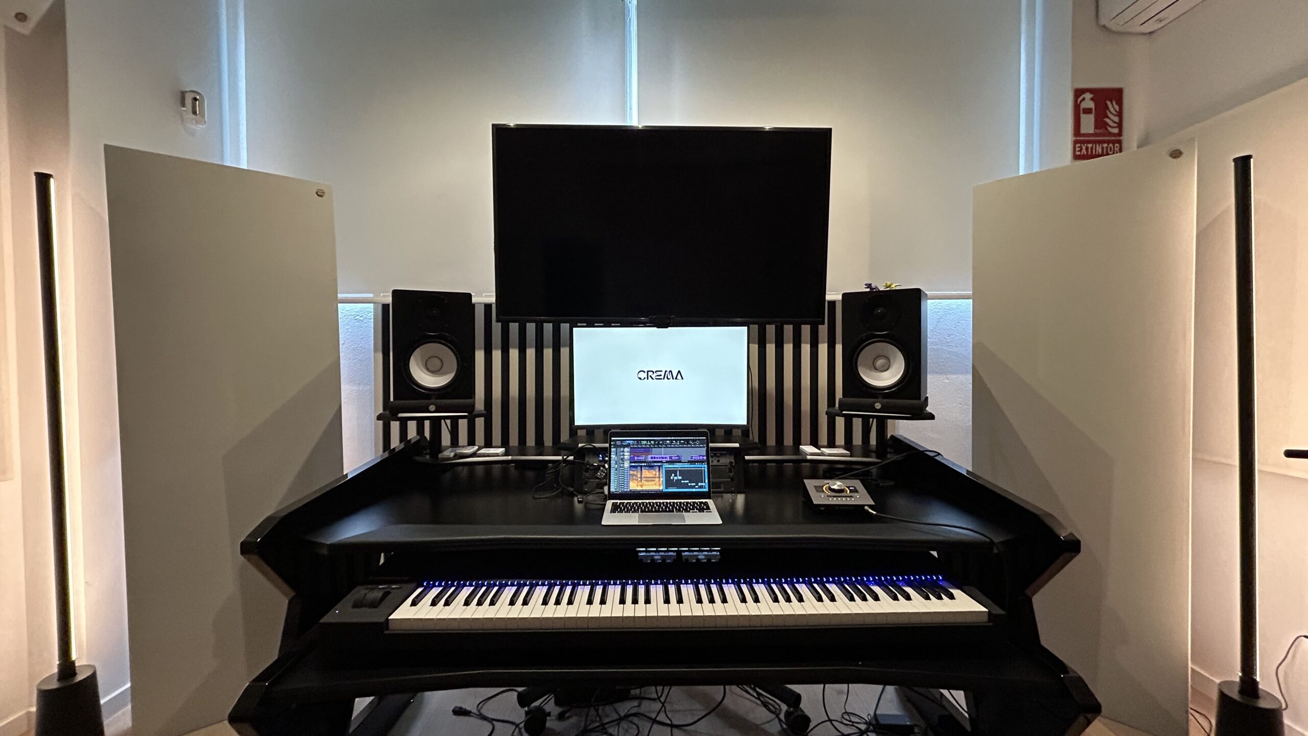 CREMA Studio, situado en el corazón de Madrid cerca de Atocha, está concebido como un espacio versátil para la creación musical y audiovisual. Moderno y acogedor, el diseño combina tecnología avanzada con una excelente acústica e iluminación, ofreciendo un entorno perfecto para la inspiración y el máximo rendimiento creativo.